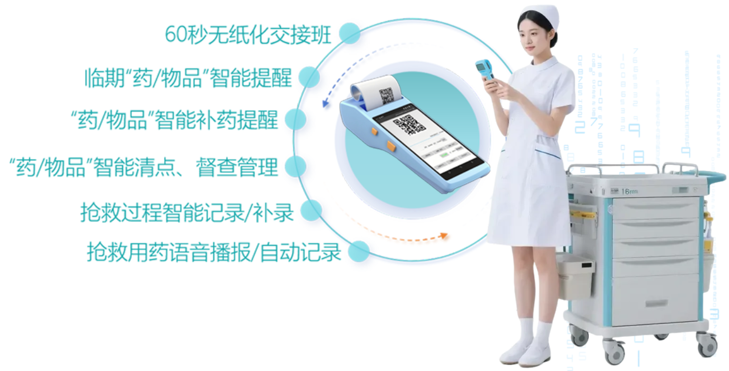 与此同时,我国《药品管理法实施条例》《医院评审标准》等政策对抢救车管理提出了明确的“五定”(定品种数量、定点放置、定人保管、定期消毒、定期检查维修)、“三无”(无过期、无变质、无失效)、“二及时”(用后及时整理、及时补充)、“一专”(专人管理)的高标准要求。如何满足严苛规范,同时破解管理痛点?智能化升级成为必由之路。